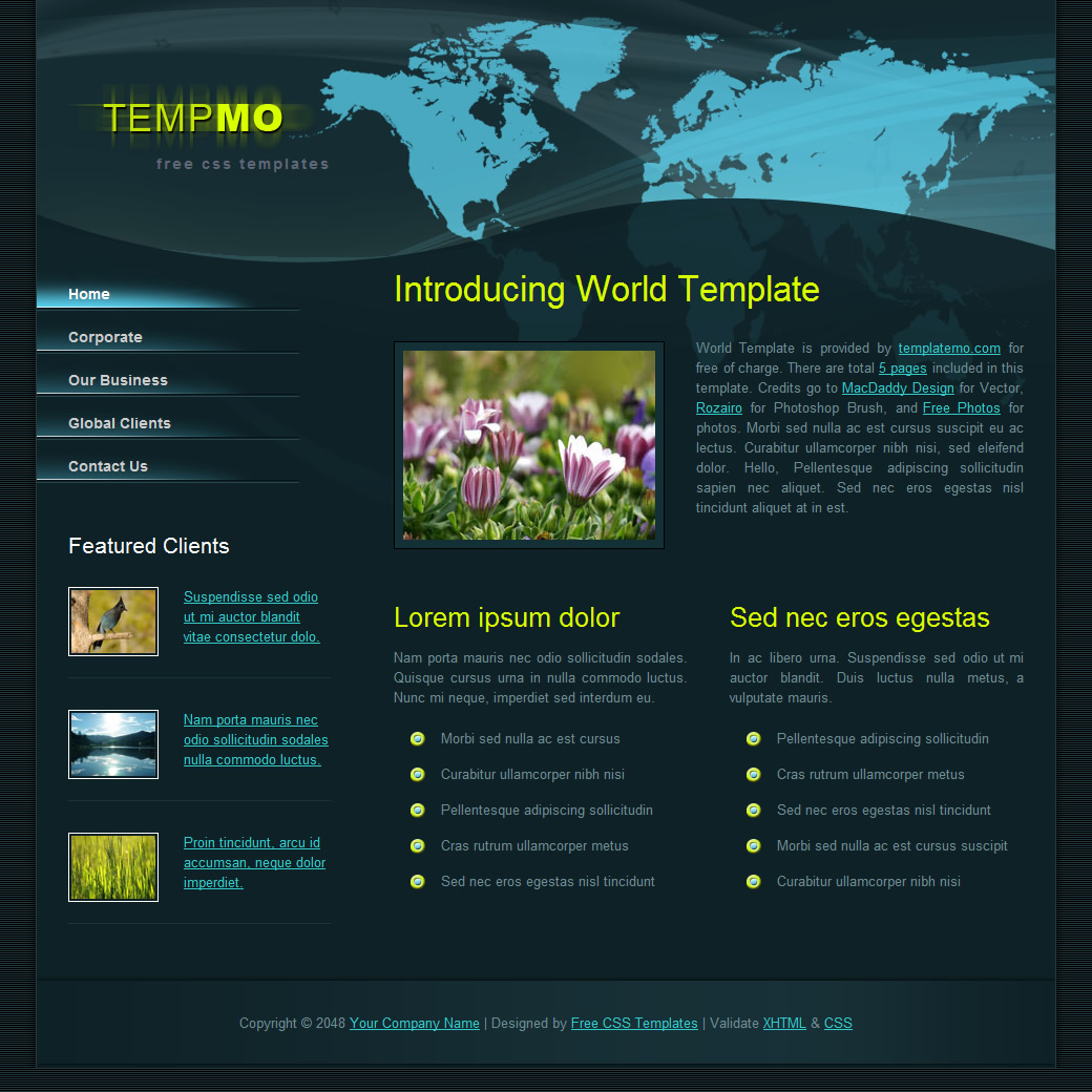 Donec nec magna enim. Etiam non tellus vel ante sollicitudin mollis. Aenean vel purus sapien, non egestas diam. Mauris quis est enim, at sodales tortor. Suspendisse nulla mi, eleifend non feugiat sit amet, pulvinar quis mi. Validate XHTML & CSS.